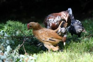 When we decided to raise chickens to control the tick population at our home, we naturally discussed the possibility of aggressive roosters and agreed that unfriendly roosters would be absolutely unacceptable and that we would only keep friendly roosters. That aggressiveness, in our opinion, was not an acceptable rooster trait. We didn’t really know what we were doing. When I first brought home the 6 baby chicks that had been raised by the kids at my school, two of them turned out to be roosters. Both were bantam breeds that would never grow to be very large. They were incredibly sweet and neither of them would have ever imagined chasing us or harming any of their friends. We were about to learn many hard lessons once we began keeping free range chickens, and the first one came when we lost one of those first sweet little roosters to a predator. We started searching for a larger, more protective rooster, understanding this was how a flock of free range chickens worked. You had to let the birds out for them to eat the ticks but that put them at risk for predators. We knew now that small roosters simply weren’t capable of protecting even themselves, let alone the entire flock. My partner found a couple of roosters not far away, and purchased one for $10.